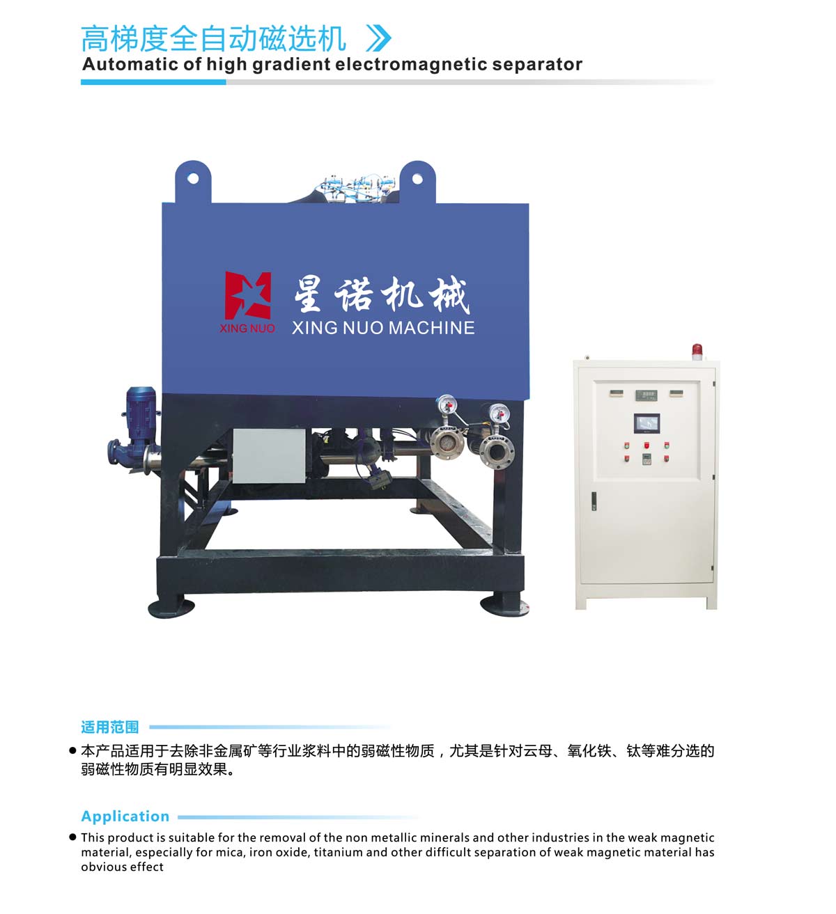 This product is suitable for the removal of the non metallic minerals and other industries in the weak magnetic material, especially for mica, iron oxide, titanium and other difficult separation of weak magnetic material has obvious effect